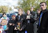 Православные активисты во время крестного хода у здания Московского городского суда, где рассматривалась кассационная жалоба на приговор участницам панк-группы Pussy Riot.
