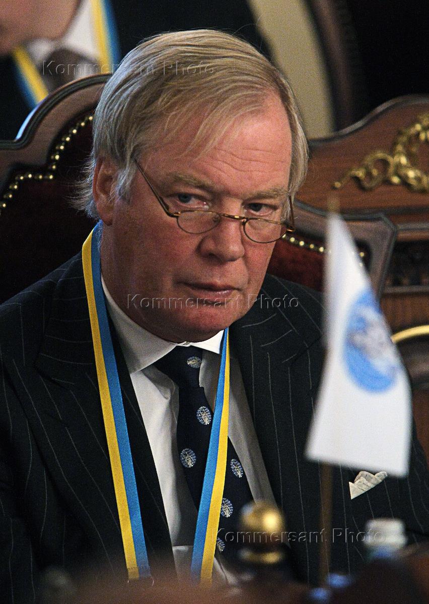 Председатель Конституционного суда Украины (КСУ) Анатолий Головин (слева) и генеральный прокурор Украины Виктор Пшонка (cправа) на заседании Координационного Совета генеральных прокуроров государств СНГ.