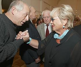 Президент информационно-издательской компании "Московские Новости" Александр Вайнштейн (слева) и художественный руководитель театра "Современник" Галина Волчек (справа) на вечере, посвященном 75-летию актера и режиссера Олега Ефремова. Вечер прошел в театре "Современник".