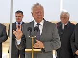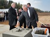 Премьер-министр Беларуси Михаил Мясникович во время церемонии закладки капсулы с посланием потомкам на месте, где планируется усовершенствовать производство железнодорожного и городского пассажирского электрического транспорта.