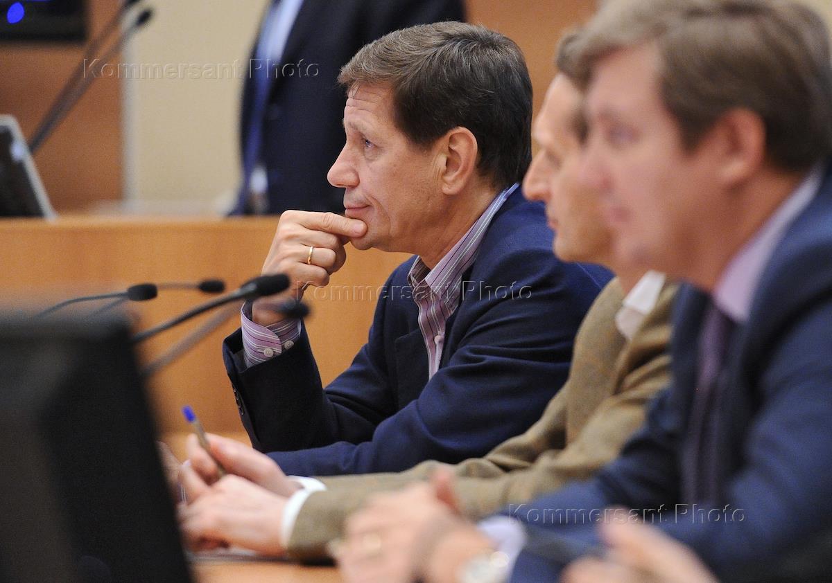 Заместитель председатель Государственной думы (ГД) России, президент Олимпийского комитета России Александр Жуков (слева) во время перезентации Зимних Олимпийских игр в Сочи в 2014 и Чемпионата мира по футболу в 2018 в ГД России в рамках проведения Международных парламентских игр.