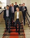 Председатель Государственной думы (ГД) России Сергей Нарышкин (первый ряд, справа) и его первый заместитель, президент Олимпийского комитета России Александр Жуков (первый ряд, слева) во время презентации Зимних Олимпийских игр в Сочи в 2014 и Чемпионата мира по футболу в 2018 в ГД России в рамках проведения Международных парламентских игр.