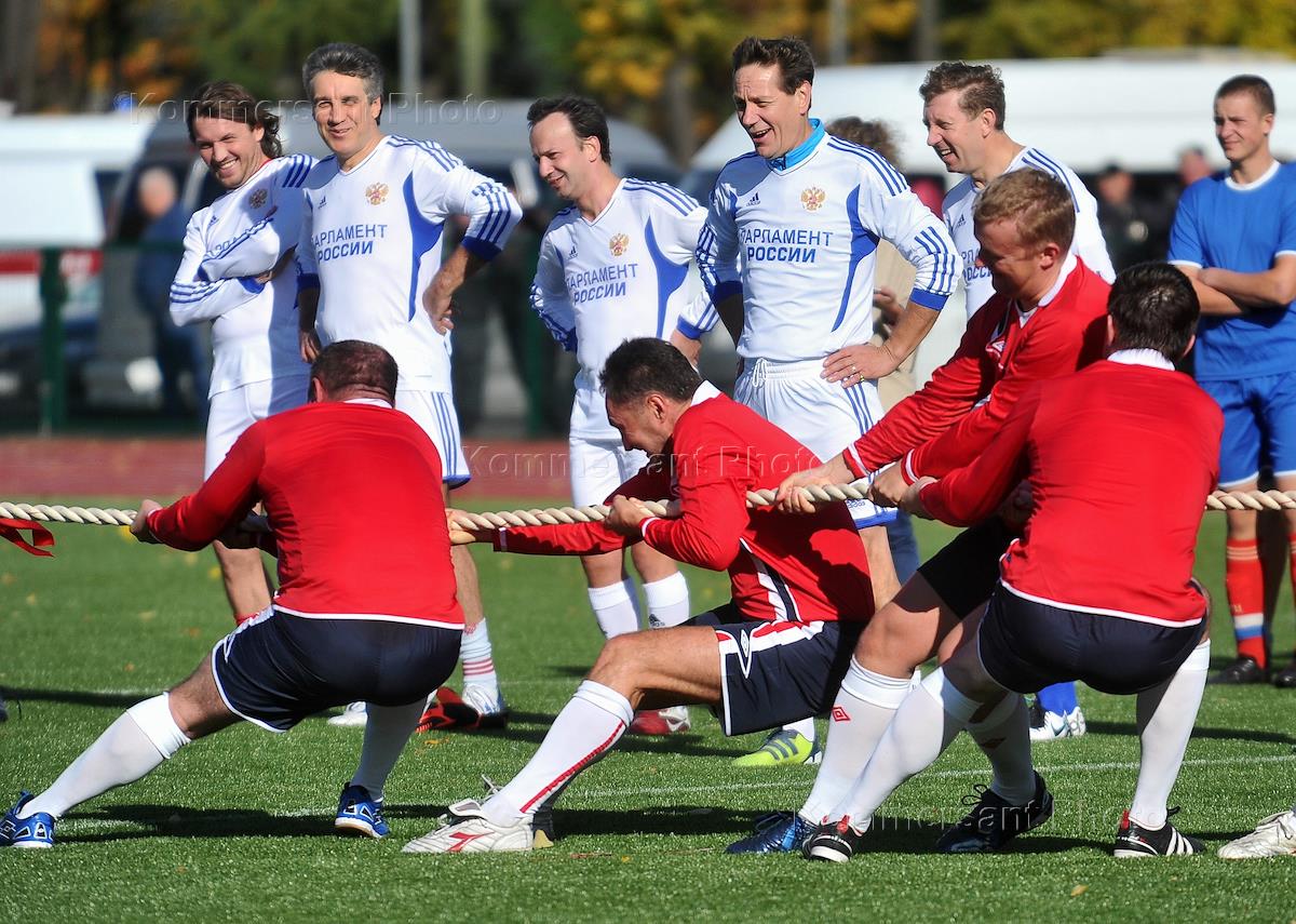 Международные парламентские игры. Член комитета Государственной думы по гражданскому, уголовному, арбитражному и процессуальному законодательству Отари Аршба (слева) во время гала-матча по футболу между сборной России и сборной мира. Матч прошел в Олимпийском комплексе "Лужники".