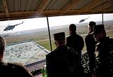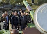 Министр обороны Украины Дмитрий Саламатин (в центре слева) и президент Украины Виктор Янукович (в центре) во время посещения 240-го центра подготовки подразделений 8-го армейского корпуса ВСУ в Житомирской области.