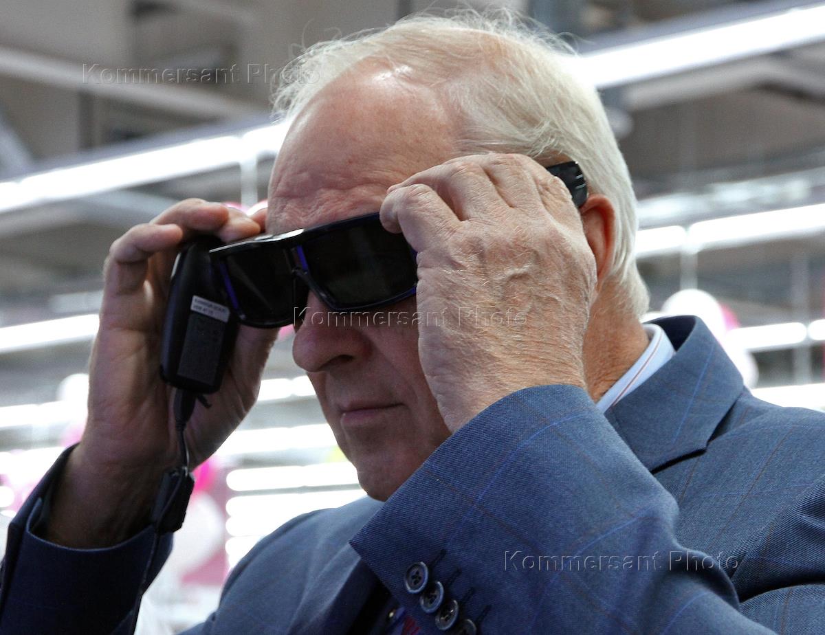 Представитель в Совете Федерации России от исполнительного органа государственной власти Свердловской области Эдуард Россель на церемонии открытия второго гипермаркета электроники сети ООО "Media Markt" (Медиа Маркт) в Екатеринбурге в торговом центре "Парк Хаус".