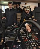 Рабочая поездка председателя правительства России Дмитрий Медведев в Северо-Западный федеральный округ. Председатель правительства России Дмитрий Медведев во время посещения научно-экспедиционного судна "Академик Трешников" ОАО "Адмиралтейские верфи".