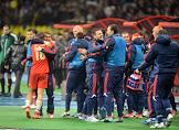 Отборочный матч чемпионата мира-2014 по футболу. Игроки сборной команды России Владимир Быстров (слева), Александр Кержаков (второй слева) и Артем Дзюба (в центре) после окончания матча между командами национальных сборных России и Португалии на Большой спортивной арене (БСА) спорткомплекса "Лужники".
