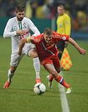 Отборочный матч чемпионата мира-2014 по футболу. Игрок сборной команды Португалии Мигел Велозу (слева) и игрок сборной команды России Игорь Денисов (справа) во время матча между командами национальных сборных России и Португалии на Большой спортивной арене (БСА) спорткомплекса "Лужники".