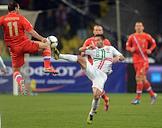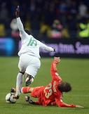 Отборочный матч чемпионата мира-2014 по футболу. Игрок сборной команды Португалии Силвештре Варела (слева) и игрок сборной команды России Дмитрий Комбаров (справа) матча между командами национальных сборных России и Португалии на Большой спортивной арене (БСА) спорткомплекса "Лужники".