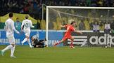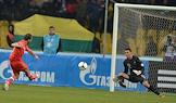 Отборочный матч чемпионата мира-2014 по футболу. Игрок сборной команды России Александр Кержаков (слева) и вратарь сборной команды Португалии Руй Патрисиу (справа) во время матча между командами национальных сборных России и Португалии на Большой спортивной арене (БСА) спорткомплекса "Лужники".