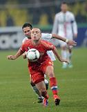 Отборочный матч чемпионата мира-2014 по футболу. Игрок сборной команды Португалии Мигел Лопеш (слева) и игрок сборной команды России Денис Глушаков (справа) во время матча между командами национальных сборных России и Португалии на Большой спортивной арене (БСА) спорткомплекса "Лужники".