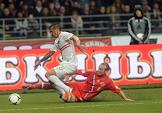 Отборочный матч чемпионата мира-2014 по футболу. Игрок сборной команды России Дмитрий Комбаров (в центре) во время матча между командами национальных сборных России и Португалии на Большой спортивной арене (БСА) спорткомплекса "Лужники".