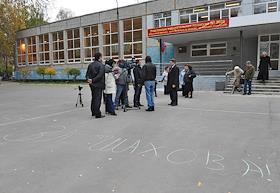 "Единый день голосования в Российской Федерации - 14 октября 2012 года". Выборы мэра Химок. Кандидат в мэры города Химки Олег Митволь на избирательном участке.
