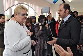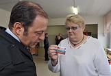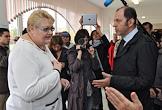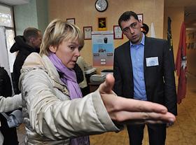 "Единый день голосования в Российской Федерации - 14 октября 2012 года". Выборы мэра Химок. Кандидат в мэры Химок Евгения Чирикова (справа) на избирательном участке.