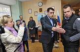 "Единый день голосования в Российской Федерации - 14 октября 2012 года". Выборы мэра Химок. Кандидат в мэры Химок Олег Шахов на избирательном участке.