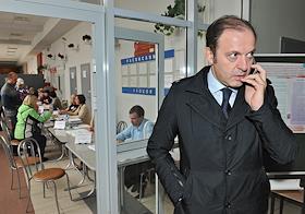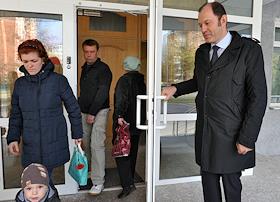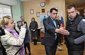 "Единый день голосования в Российской Федерации - 14 октября 2012 года". Выборы мэра Химок. Кандидат в мэры города Химки Олег Митволь на избирательном участке.