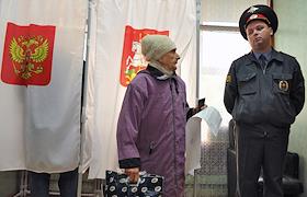 "Единый день голосования в Российской Федерации - 14 октября 2012 года". Выборы мэра Химок. Во время голосования на избирательном участке.