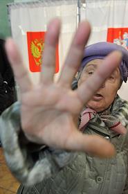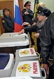"Единый день голосования в Российской Федерации - 14 октября 2012 года". Выборы мэра Химок. Кандидат в мэры Химок Евгения Чирикова (слева) на избирательном участке.