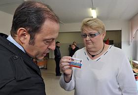 "Единый день голосования в Российской Федерации - 14 октября 2012 года". Выборы мэра Химок. Кандидат в мэры города Химки Олег Митволь (слева) на избирательном участке.