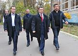 "Единый день голосования в Российской Федерации - 14 октября 2012 года". Выборы мэра Химок. Кандидат в мэры Химок Олег Шахов (второй справа).