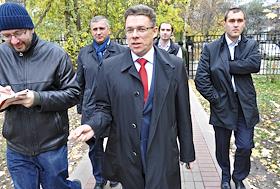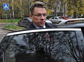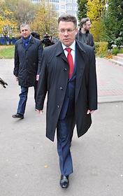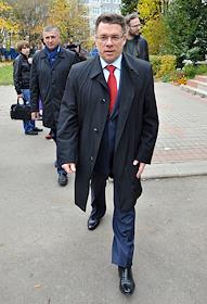 "Единый день голосования в Российской Федерации - 14 октября 2012 года". Выборы мэра Химок. Кандидат в мэры города Химки Олег Митволь после голосования на избирательном участке.