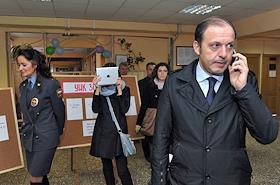 "Единый день голосования в Российской Федерации - 14 октября 2012 года". Выборы мэра Химок. Кандидат в мэры Химок Олег Шахов после голосования на избирательном участке.