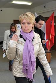 "Единый день голосования в Российской Федерации - 14 октября 2012 года". Выборы мэра Химок. Лидер движения по защите Химкинского леса, кандидат в мэры Химок Евгения Чирикова на избирательном участке.