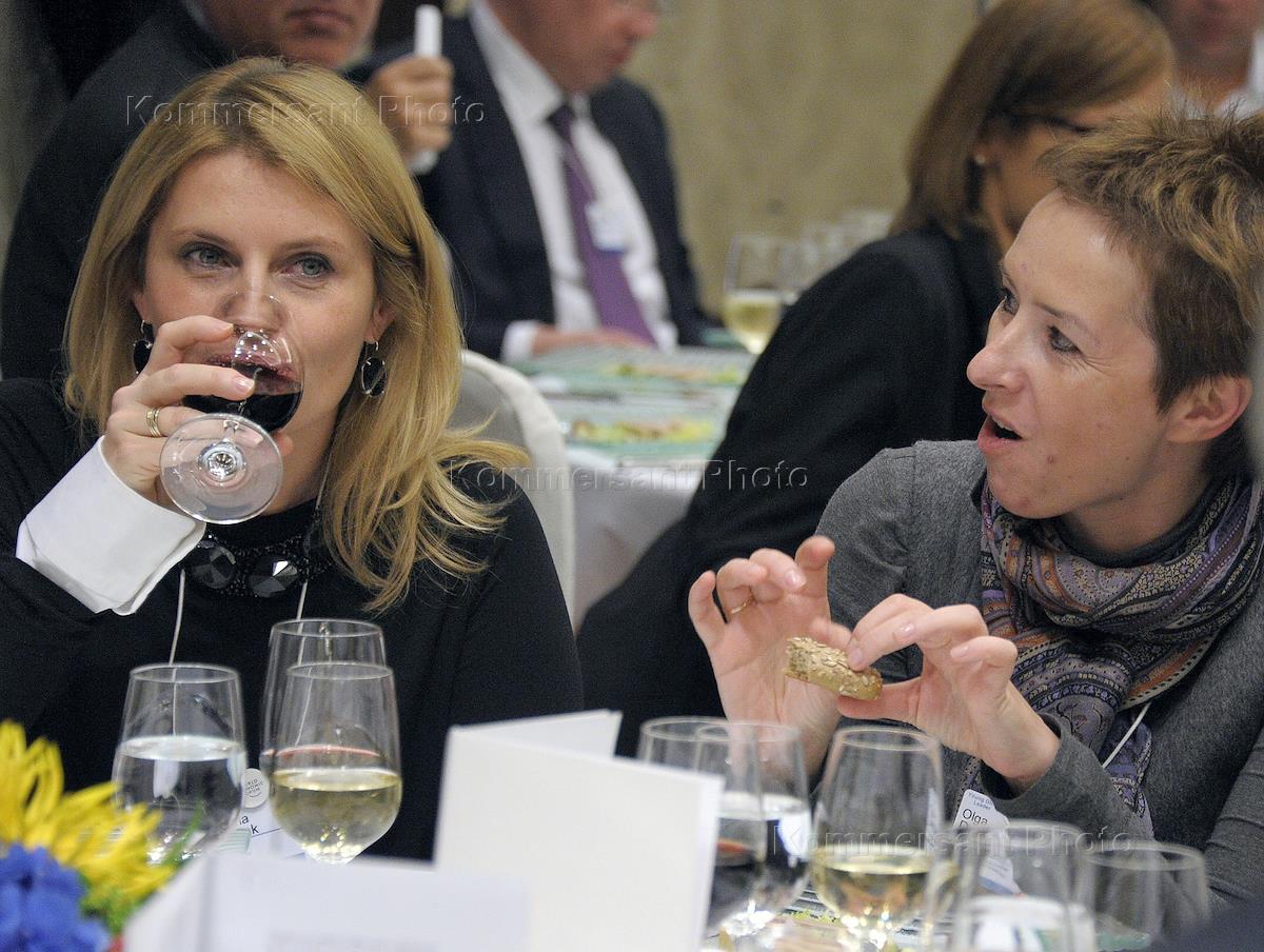 Заместитель министра экономического развития России, руководитель Федерального агентства по управлению государственным имуществом Ольга Дергунова (справа) на выездном заседании Всемирного экономического форума. Сессия "Россия в мировом контексте" в формате рабочего ужина прошла в гостинице "Балчуг Кемпински".