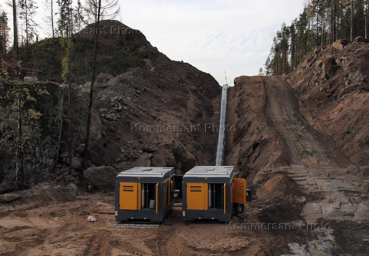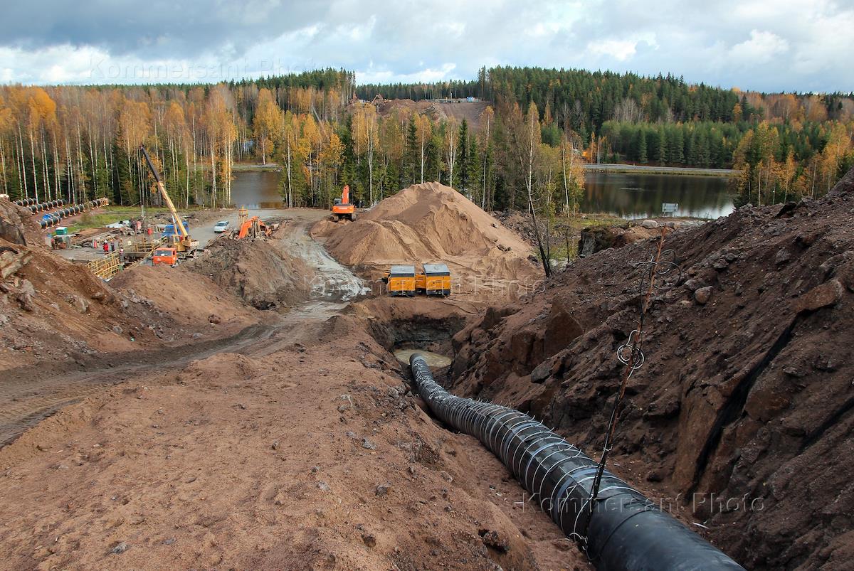 Зона Сайменского канала. Строительство тоннеля под Сайменским каналом для прокладки трубы 2-й ветки газопровода "Северный поток". Отрезок газопровода на подходе к тоннелю.