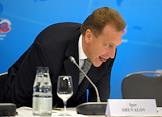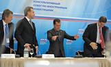 Слева направо: президент и генеральный директор норвежской телекоммуникационной компании Telenor Йон Фредерик Баксаас, первый заместитель председателя правительства России Игорь Шувалов и председатель правительства России Дмитрий Медведев во время XXVI пленарного заседания Консультативного совета по инвестициям. Заседание прошло в зале "Владимир" гостиницы "Балчуг Кемпински".
