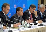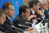 Председатель правительства России Дмитрий Медведев во время XXVI пленарного заседания Консультативного совета по инвестициям. Заседание прошло в зале "Владимир" гостиницы "Балчуг Кемпински".