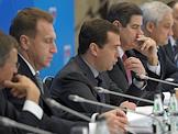 Слева направо: первый заместитель председателя правительства России Игорь Шувалов, председатель правительства России Дмитрий Медведев, исполнительный директор аудиторской компании Ernst & Young Global Джеймс Терли и министр экономического развития России Андрей Белоусов во время XXVI пленарного заседания Консультативного совета по инвестициям. Заседание прошло в зале "Владимир" гостиницы "Балчуг Кемпински".