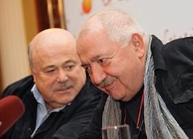 Художественный руководитель Московского театра "Et Cetera" Александр Колягин (слева) и режиссер Роберт Стуруа (справа) во время пресс-конференции, посвященной открытию девятнадцатого театрального сезона театра.