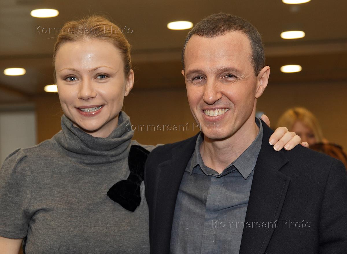 Актер Никита Джигурда (слева) и фигуристка Марина Анисина (справа) на первом заседании Клуба "НеАнонимных Эротоманов". Заседание прошло ресторане NOA.