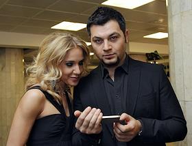 Певец Сосо Павлиашвили с женой во время Гала-концерта, посвященного 90-летию со дня рождения композитора Арно Бабаджаняна. Концерт прошел в Государственном Кремлевском дворце.
