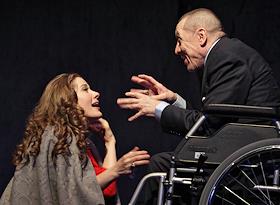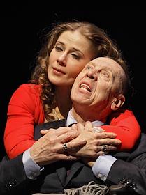 Актриса Ирина Линдт (слева) и режиссер Валерий Золотухин (справа) во время пресс-показа спектакля "Король умирает". Спектакль прошел в театре на Таганке.