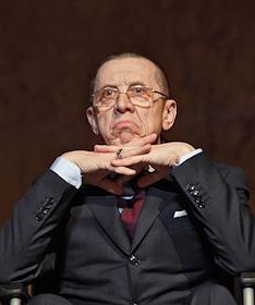 Режиссер Кшиштоф Занусси во время пресс-показа спектакля "Король умирает". Спектакль прошел в театре на Таганке.