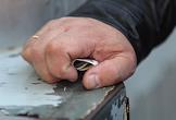 Жанровая фотография. Мужская рука держит долларовую купюру у окошка обменного пункта валюты.