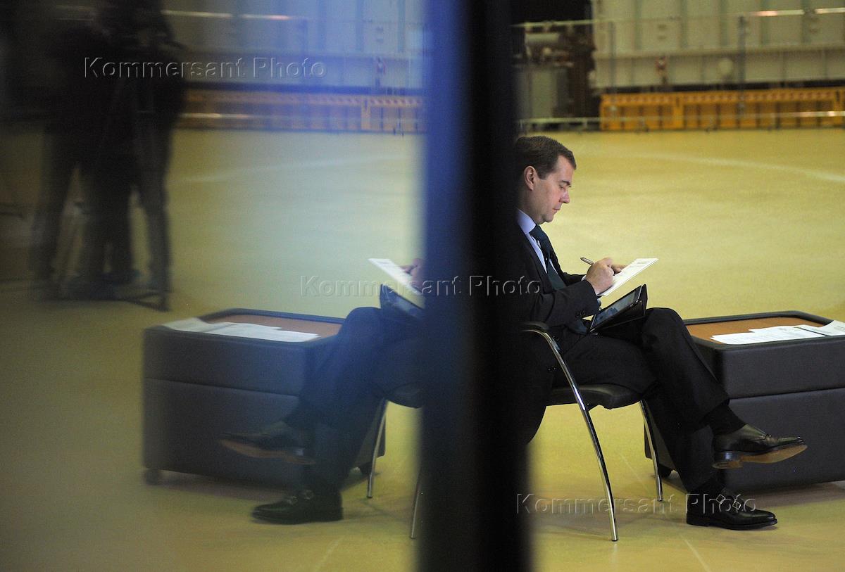 Председатель правительства России Дмитрий Медведев на заседании рабочей группы по теме: "Совершенствование законодательства о промышленной безопасности опасных производственных объектов". Заседание прошло на Московском "Электрозаводе".