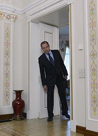 Министр иностранных дел России Сергей Лавров перед началом встречи президента России Владимира Путина с наследным принцем Абу-Даби, заместителем Верховного главнокомандующего Вооружёнными силами Объединённых Арабских Эмиратов Мухаммедом Аль Нахайяном.