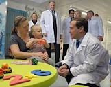 Рабочая поездка председателя правительства России Дмитрия Медведева в Калининградскую область. Председатель правительства России Дмитрий Медведев (справа) во время посещения Центра сердечно-сосудистой хирургии.