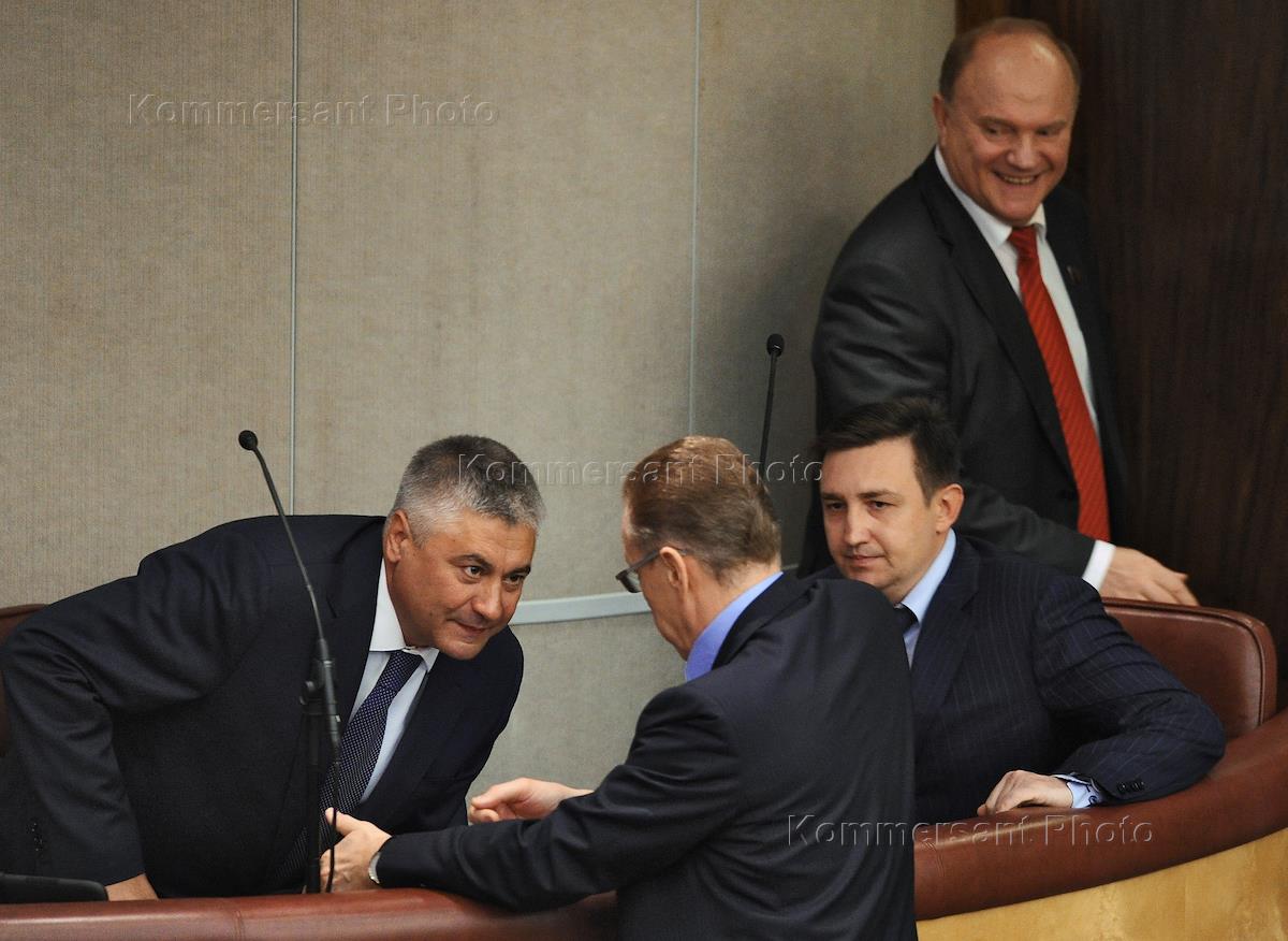 Слева направо: член комитета Государственной думы (ГД) России по региональной политике и проблемам Севера и Дальнего Востока Михаил Николаев, заместитель председателя комитета ГД по физической культуре, спорту и делам молодежи Юрий Афонин, лидер Коммунистической партии России, член комитета ГД по науке и наукоемким технологиям Геннадий Зюганов (в центре) и член комитета ГД по экономической политике, инновационному развитию и предпринимательству Илья Пономарев (справа) во время пленарного заседания Госдумы России.