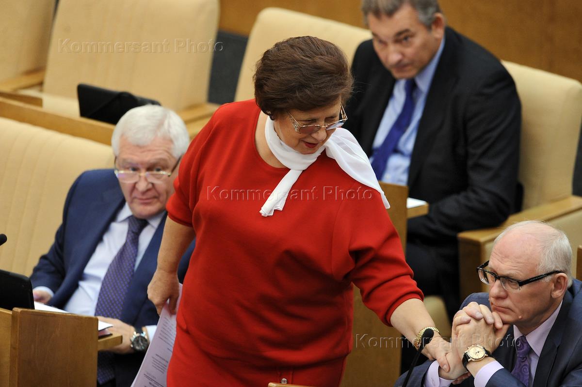 Заместитель председателя комитета Государственной думы (ГД) по Регламенту и организации работы ГД Светлана Горячева (в центре) во время пленарного заседания Госдумы России.
