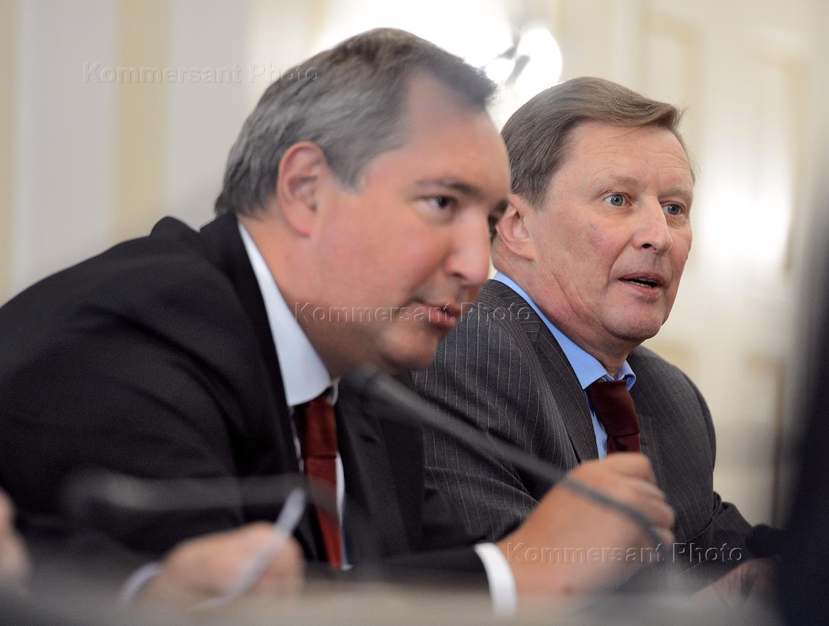 Заместитель председателя правительства России Дмитрий Рогозин (слева) и руководитель администрации президента России Сергей Иванов (справа) на заседании Комиссии по вопросам военно-технического сотрудничества (ВТС) с иностранными государствами.
