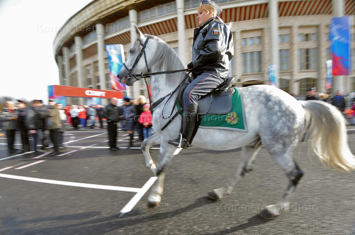 Первый спортивный праздник московской полиции, посвященный Дню сотрудника органов внутренних дел (ОВД) прошел на территории олимпийского комплекса "Лужники". Сотрудники конной полиции.