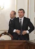 Президент России Владимир Путин (слева) и президент, председатель правления ОАО "НК "Роснефть" Игорь Сечин (справа) на заседании Комиссии по вопросам стратегии развития топливно-энергетического комплекса (ТЭК) и экологической безопасности. Заседание прошло в Ново-Огарево.