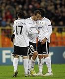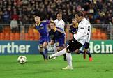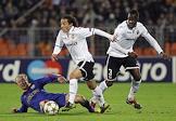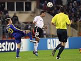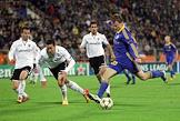 Лига чемпионов УЕФА 2012-2013. Матч между командами БАТЭ (Борисов, Беларусь) и "Валенсия" (Испания). Игрок ФК "Валенсия" Роберто Соладо (в центре) во время матча.