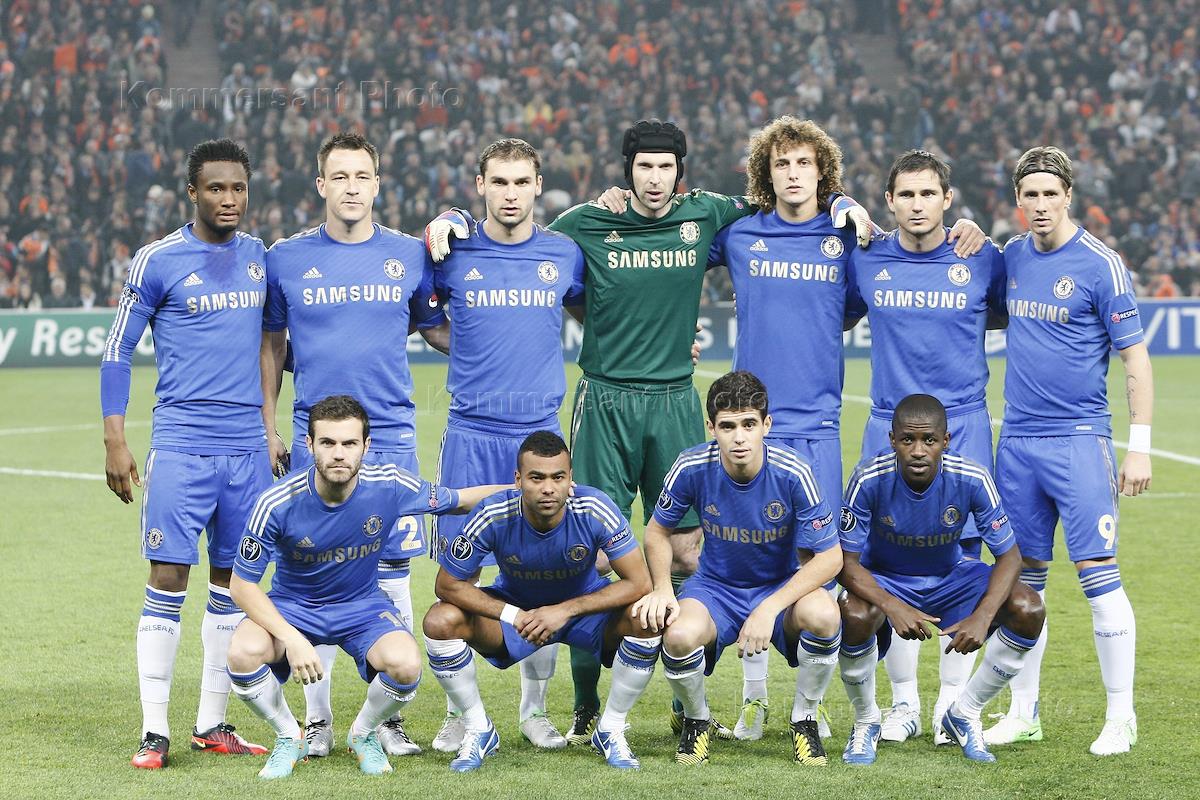 Лига чемпионов по футболу 2012/13. Группа "Е". 3-й тур. Игроки команды "Челси" перед началом матча между командами "Шахтер" (Донецк, Украина) - "Челси" (Лондон, Англия). Матч прошел на стадионе "Донбасс Арена".