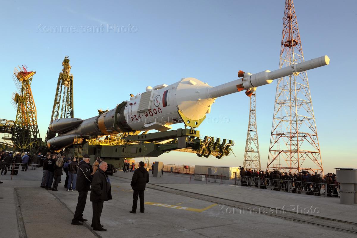 Verticalization of the carrier rocket "Soyuz-FG" with piloted "Soyuz-TAM".