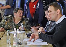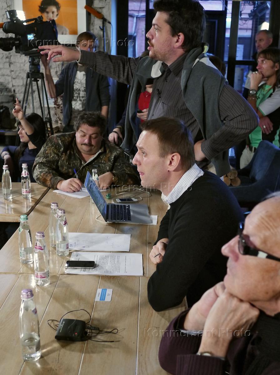 Председатель Координационного совета оппозиции (КСО) Алексей Навальный (слева) на первом заседании Координационного совета оппозиции в кафе DOME.